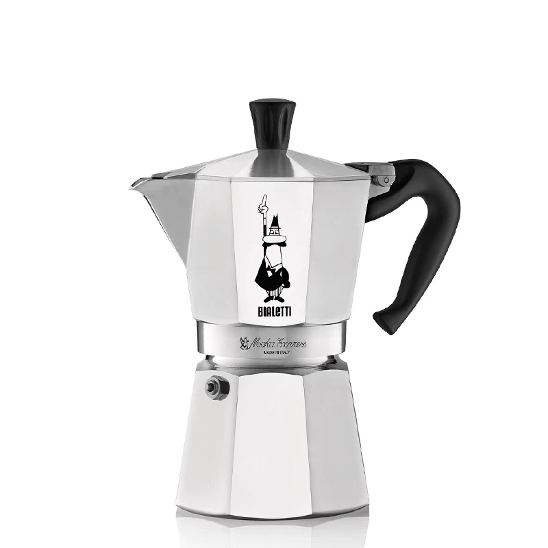 Diese Kaffeekanne besitzt echten Kult-Status. Nicht nur Italiener, sondern Kaffee-Fans auf der ganzen Welt schätzen das praktische Gerät. Es ist so klein und handlich, dass es sich ohne Weiteres auch auf Reisen mitnehmen lässt. Dank der Bialetti Moka Express können Kaffee-Liebhaber überall exklusiven Espresso genießen. Die Bialetti Moka Express für neun Tassen besitzt als Erkennungszeichen neben ihrer charakteristischen achteckigen Form das bekannte Bialetti Logo auf der Vorderseite.