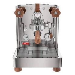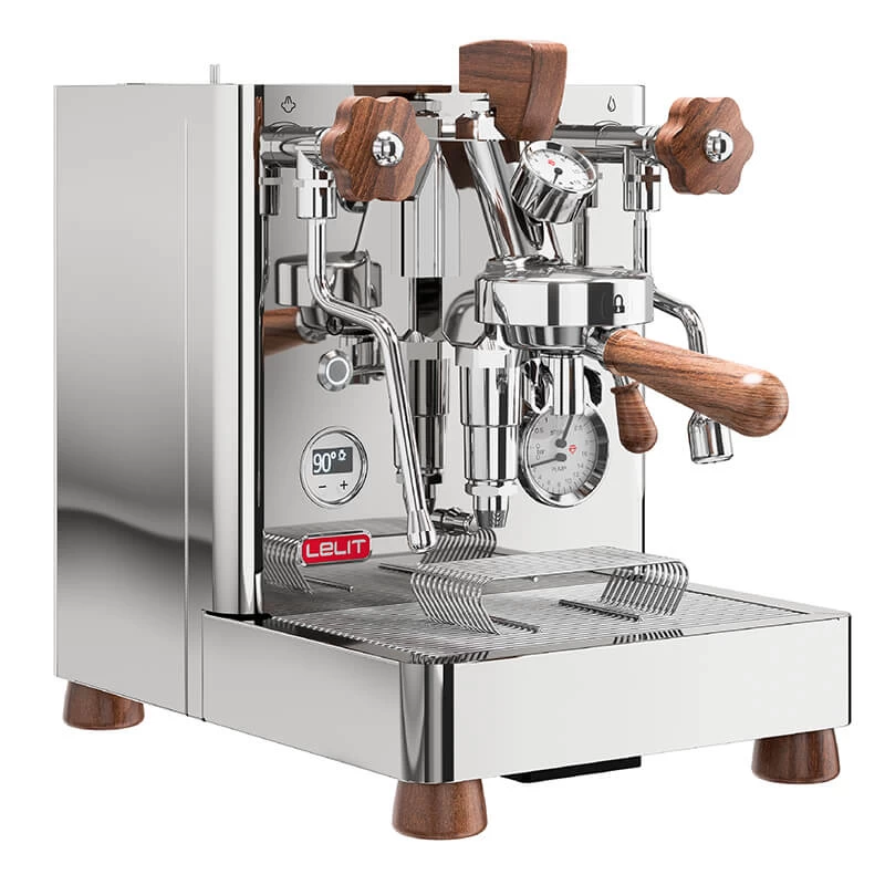 Die LELIT Bianca Siebträgermaschine ist nicht nur technisch auf höchstem Niveau, sondern überzeugt auch durch ihr ästhetisches Design. Die hochwertige Walnuss-Verkleidung verleiht der Siebträgermaschine eine zeitlose Eleganz und macht sie zum Blickfang in jeder Küche. Gleichmäßige Espresso-Extraktionen und eine optimale Temperaturstabilität sind dank der beiden, separaten Edelstahlkessel gewährleistet. Die bewährte Brühgruppe E61 macht die Extraktion zusätzlich optimal und der Druck lässt sich mit dem Paddel oberhalb der Brühgruppe individuell anpassen. Überwachen Sie hier den Druck über beide Manometer. Nach einer Aufheizzeit von bis zu 25 Minuten ist die Bianca Espressomaschine startklar für eine einwandfreie Kaffeezubereitung.