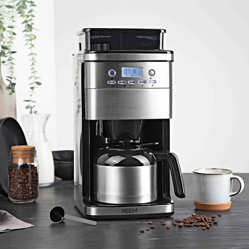 Neben einer hohen Qualität der gewählten Kaffeebohnen gibt es einige Komponenten, die darüber entscheiden, wie entspannend und genussvoll die Kaffeeauszeit wird! Besonders wichtig ist natürlich die Frische, aber auch die einfache Bedienung der Maschine. BEEM hat alle notwendigen Features in die Fresh Aroma Perfect Superior Filterkaffeemaschine eingebaut, damit dem Entspannungsmoment mit einer Tasse exquisiten Filterkaffees nichts im Wege steht. Die Filterkaffeemaschine kann in der Thermokanne bis zu 1 Liter – also circa 8 Tassen – Filterkaffee zubereiten.
