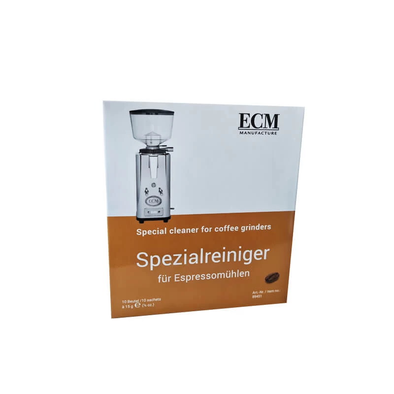 Der ECM Mühlenreiniger enthält 10 Beutel und diese bestehen aus lebensmittelechten Naturstoffen. Die regelmäßige Nutzung des Reinigers von ECM bewahrt einem vor eventuellen Reparaturen, denn der Reiniger säubert die Mahlscheiben von Kaffeeölen, Gerüchen und Geschmacksresten. So steht der nächsten Kaffeepulverherstellung nichts im Wege.