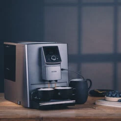 Der Vollautomat von Nivona ist ein hochwertiger Kaffeevollautomat, der mit zahlreichen praktischen Funktionen überzeugt. Eine besonders nützliche Eigenschaft ist die herausnehmbare Brüheinheit, die eine schnelle und gründliche Reinigung ermöglicht. Dank der Spülpflege-Automatik für den OneTouch-SPUMATORE wird auch die Milchdüse automatisch gereinigt und desinfiziert. Der CLARIS Frischwasserfilter sorgt dafür, dass das Wasser stets optimal gefiltert wird und zeigt dank einer praktischen Kontrollanzeige an, wann ein Filterwechsel notwendig ist. Zudem verfügt unser Kaffeevollautomat über automatische Pflegeprogramme zum Entkalken und Reinigen, die eine einfache Wartung ermöglichen und für eine lange Lebensdauer des Geräts sorgen. Der entnehmbare Wassertank des Nivona- NICR 823 erleichtert die Reinigung und Befüllung des Automaten. Der Tank fasst bis zu 1,8 Liter Wasser und reicht somit für mehrere Tassen Kaffee oder Tee aus. Durch die Entnahme des Tanks können Sie ihn bequem unter dem Wasserhahn auffüllen oder reinigen.