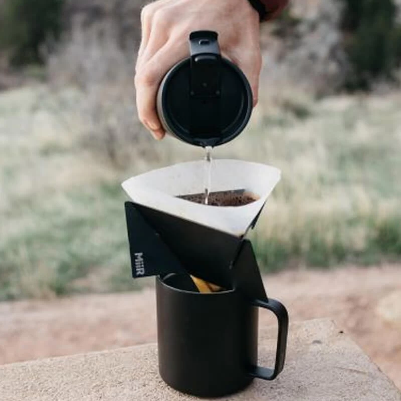 Der Pourigami Pour Over Filterhalter von MiiR zählt sicherlich zu den kompaktesten seiner Art. Der Pourigami besteht aus drei einzelnen Edelstahlwänden, welche zusammengesteckt den dreieckigen Filterhalter ergeben. In Einzelteilen lässt er sich hervorragend verstauen, er passt sogar in die Hosentasche.